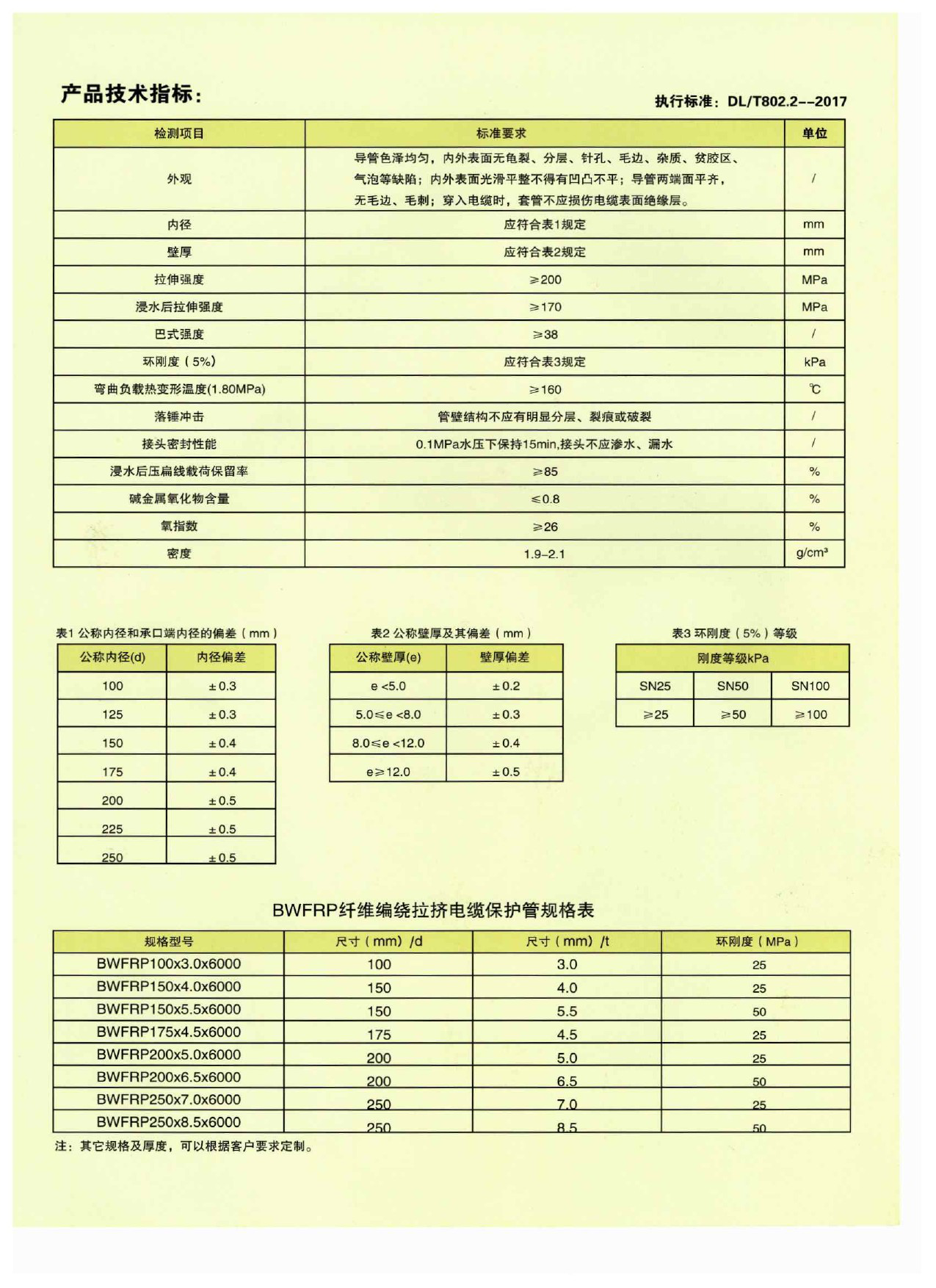 纖維編繞拉擠電纜保護管(BWFRP)規格型號:
