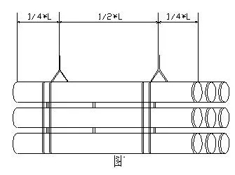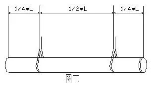 裝卸單管時(shí),要使用柔順的吊帶、吊繩或繩索起吊,帆布帶或尼龍繩,最小寬度為19cm,尼龍繩的最小直徑為30mm,若用鋼索或鐵鏈吊運(yùn)管子必須在上面套上橡膠管或其它柔性管,禁止拋落或碰擊管道。管子可用單點(diǎn)起吊(如圖2),也可用兩點(diǎn)起吊(如圖3),此法易控制管子的穩(wěn)定,切勿將繩子穿過管子內(nèi)部?jī)啥撕笃鸬?由于管道表面比較光滑,為安全起見,通常提起兩個(gè)點(diǎn))。